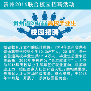 貴州省人才大市場結(jié)合多年校園招聘活動(dòng)的經(jīng)驗(yàn),從提供簡單的招聘會(huì)展服務(wù),逐步演變成為提供高校就業(yè)招聘平臺(tái)、就業(yè)政策宣傳、企業(yè)形象展示、就業(yè)指導(dǎo)服務(wù)、高校畢業(yè)生人才庫等綜合性服務(wù),并建立與高校就業(yè)管理部門的長期合作機(jī)制,以更好推動(dòng)高校畢業(yè)生就業(yè)工作。