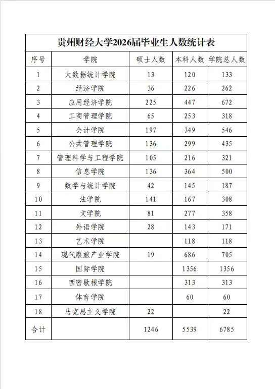 學(xué)校下設(shè)20個(gè)學(xué)院,有全日制在校生25272人,其中博士研究生236人,碩士研究生3621人,本科生21347人,留學(xué)生68人。全校教職工2059人,其中具有博士學(xué)位792人,高級(jí)職稱教師769人;博士生導(dǎo)師78人。享受國(guó)務(wù)院政府特殊津貼專家2人,享受省政府特殊津貼專家5人,貴州省委重點(diǎn)聯(lián)系專家2人,聯(lián)系專家10人,貴州省“金師”(教學(xué)名師)36人。學(xué)校占地面積5939畝,校舍建筑面積96.3萬(wàn)平方米;教學(xué)科研實(shí)習(xí)儀器設(shè)備資產(chǎn)值2.22億元;圖書館紙質(zhì)圖書261.58萬(wàn)冊(cè),電子圖書170.1萬(wàn)冊(cè)。學(xué)校承建有歐陽(yáng)黔森、肖白、岳黔山、侯丹梅、畢贛5位文藝名家工作室,“二維碼”圖書館獲中國(guó)建設(shè)工程魯班獎(jiǎng),建有票據(jù)博物館。